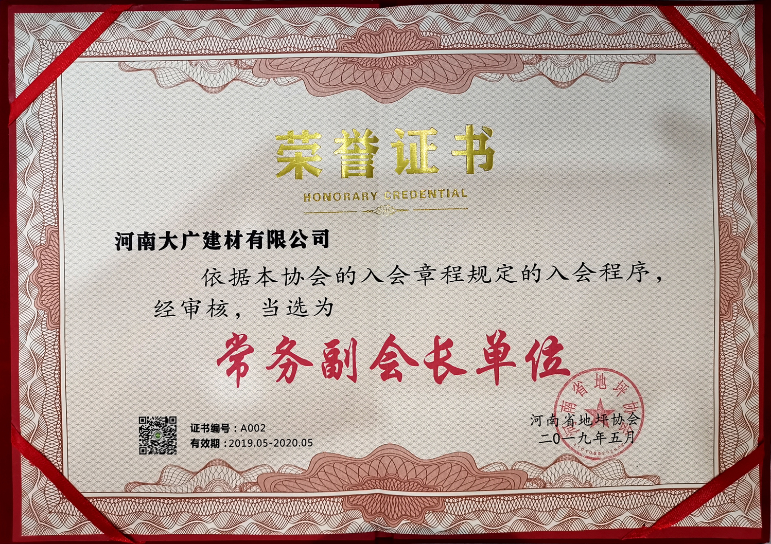 榮獲:河南省地坪協(xié)會(huì)*具影響力材料商 稱號